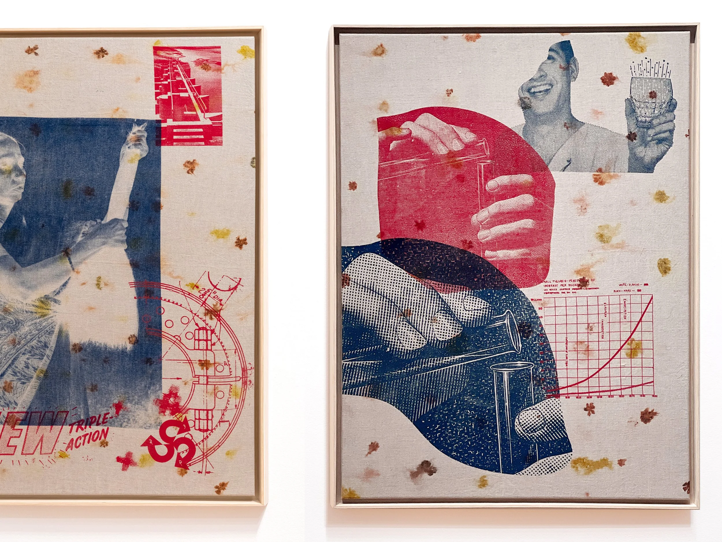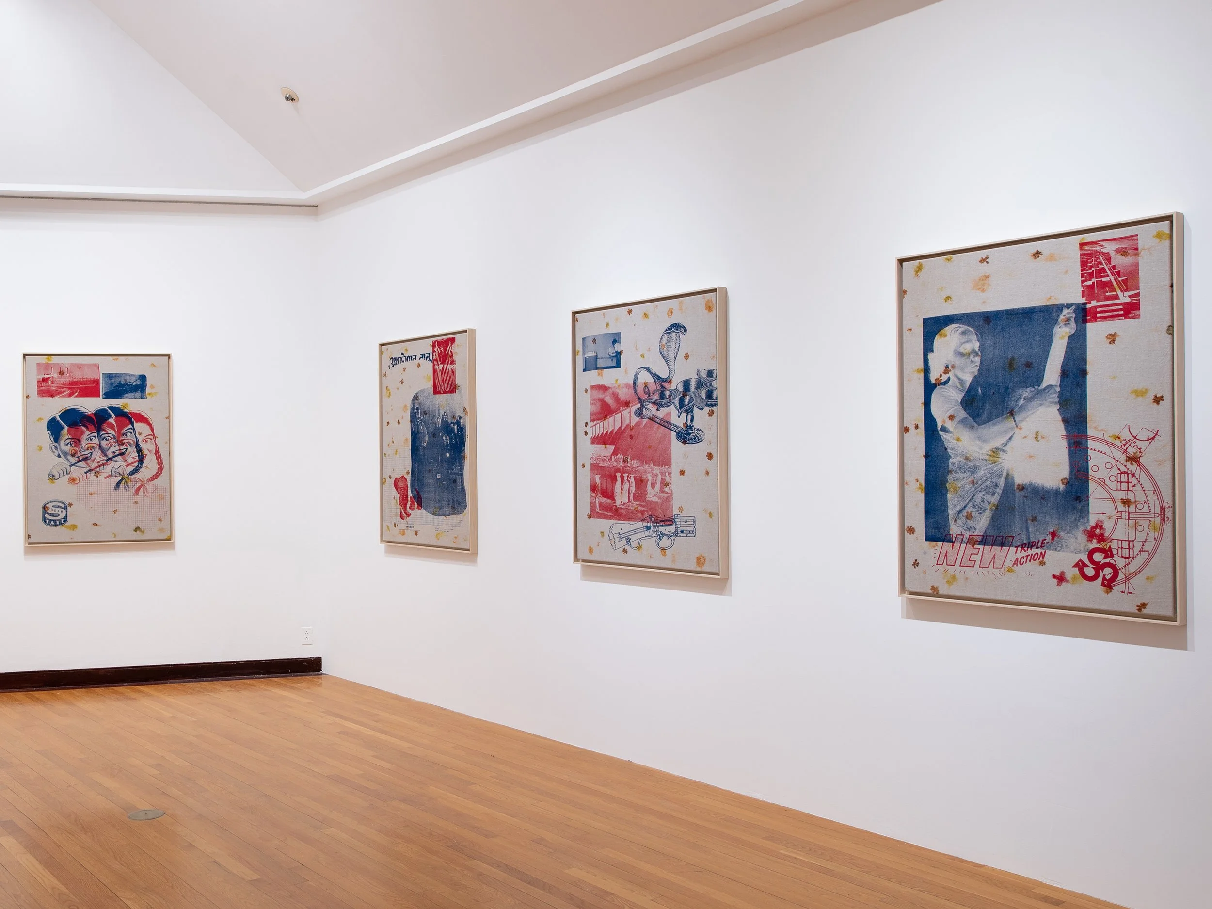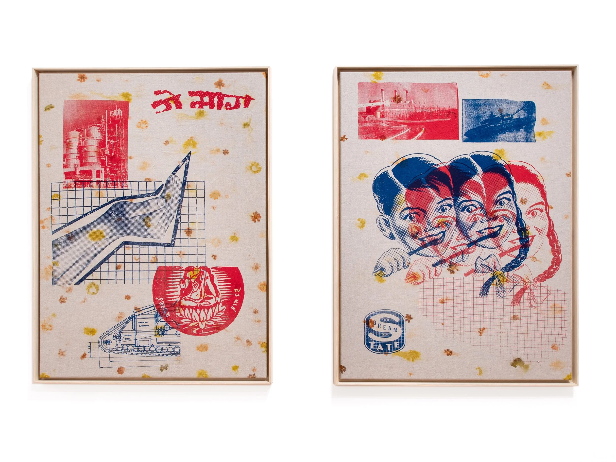 National Origins Formula (Series), 2022, Screenprints on Eco-Printed Linen with Coreopsis and Marigolds, 36 x 48 inches